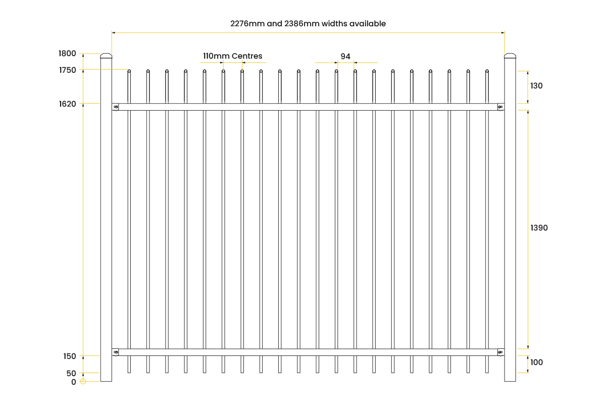 1.75mH 2 Rails Spear Top - Chiefs HDG Steel Panel